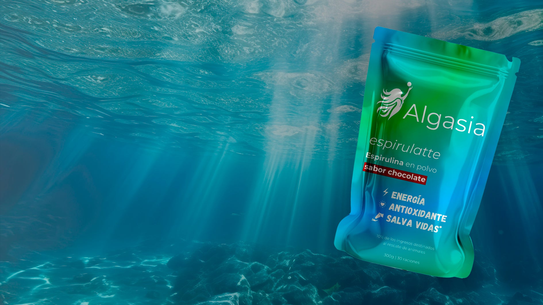Microalga rica en ficocianina. Aporta micronutrientes y color verde característico.